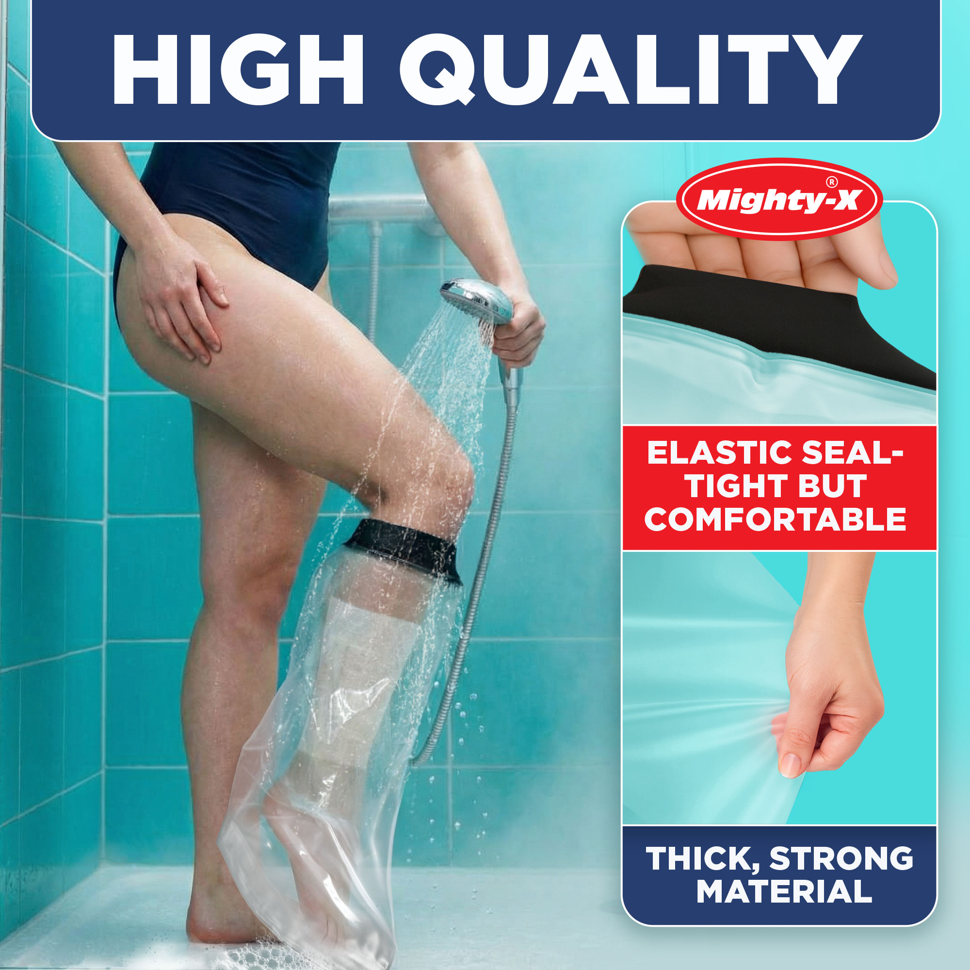 We know, that wearing a cast can be uncomfortable and overwhelming—we sympathize with you. Although, you don’t have to avoid bathing during recovery due to worries about getting your wrap or cast wet. Try Mighty-X cast cover for showering leg injuries to cover your whole leg for a carefree shower whenever you want.