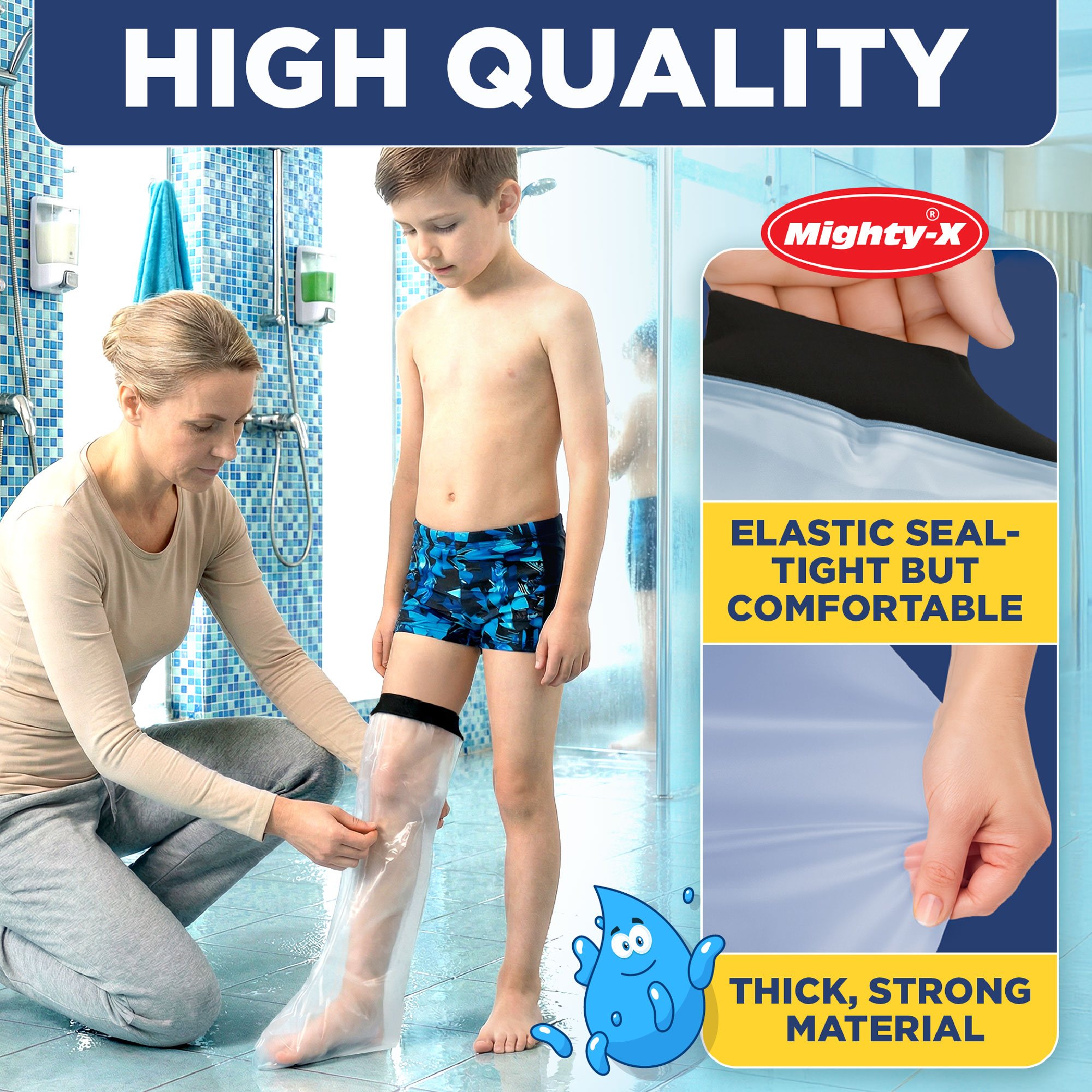 We know, that wearing a cast can be uncomfortable and overwhelming—we sympathize with you. Although, you don’t have to avoid bathing during recovery due to worries about getting your wrap or cast wet. Try Mighty-X cast cover for showering leg injuries to cover your whole leg for a carefree shower whenever you want.