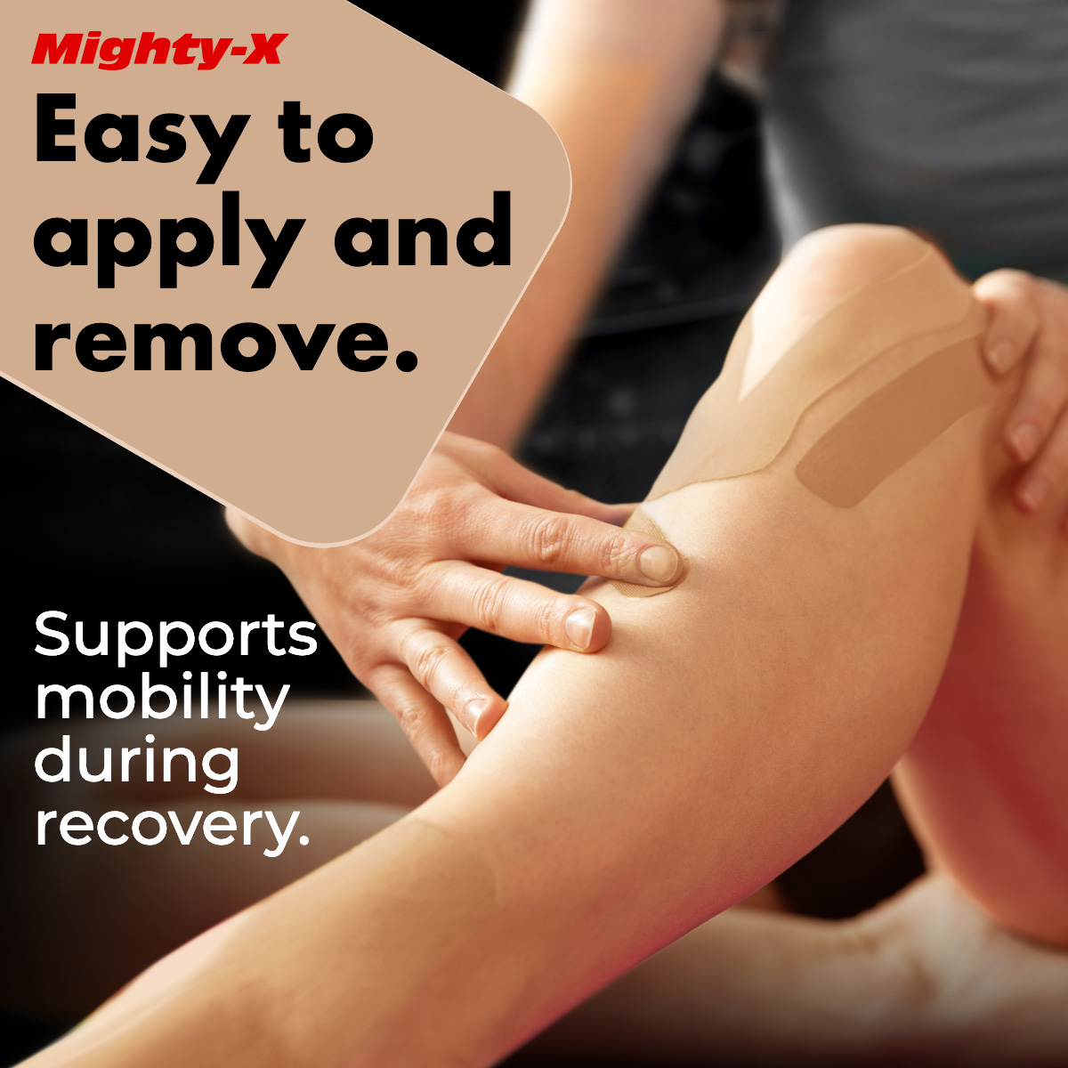 Kinesiology tape roll not only has become a common accessory for high-level athletes, but also for active men and women who have ever injured themselves during a workout. There’s nothing better to help you keep exercising while dealing with various aches or minor injuries. Mighty-X k tape roll provides immediate pain relief for sore muscles and supports injured joints by helping to reduce spasms. Using kinesiology tape allows the injury to heal properly with less risk of further strain.