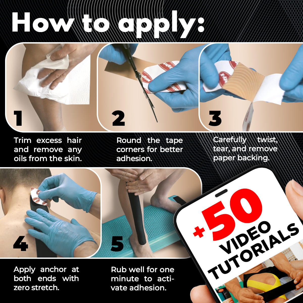 Due to the kinesiology tape waterproof fabric, your muscle tape pain relief application will last longer without peeling or fraying even after a hard sweaty workout or a long relaxing shower. This nylon material is designed to repel water and dry quicker than regular tape. You don’t have to re-apply the sport tape kinesiology backing every day—it saves you money!