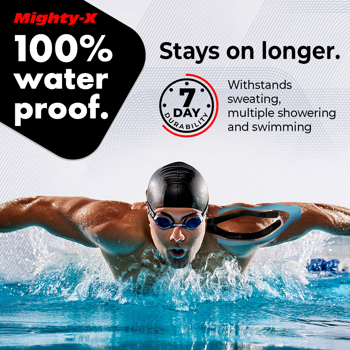 Regular knee tape for knee pain is made of cotton that loses its elasticity in under 3 days, so you can’t count on reliable support for long. The breathable, thin, and lightweight fabric of Mighty-X trans tape provides long-lasting elasticity and strong support for up to 7 days without limiting your range of motion.