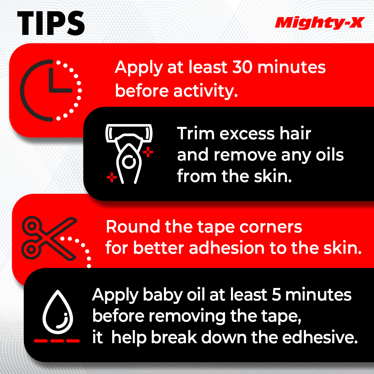 Kinesiology tape roll not only has become a common accessory for high-level athletes, but also for active men and women who have ever injured themselves during a workout. There’s nothing better to help you keep exercising while dealing with various aches or minor injuries. Mighty-X k tape roll provides immediate pain relief for sore muscles and supports injured joints by helping to reduce spasms. Using kinesiology tape allows the injury to heal properly with less risk of further strain.