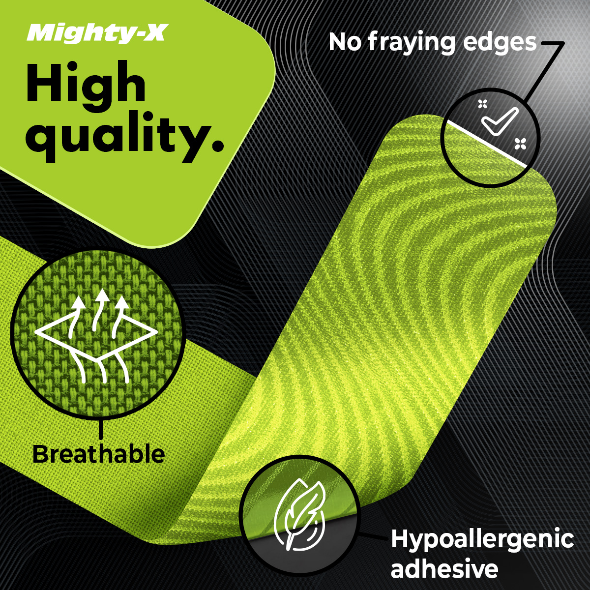 Kinesiology tape roll not only has become a common accessory for high-level athletes, but also for active men and women who have ever injured themselves during a workout. There’s nothing better to help you keep exercising while dealing with various aches or minor injuries. Mighty-X k tape roll provides immediate pain relief for sore muscles and helps support injured joints by helping to reduce spasms. Using kinesiology tape allows the injury to heal properly with less risk of further strain.