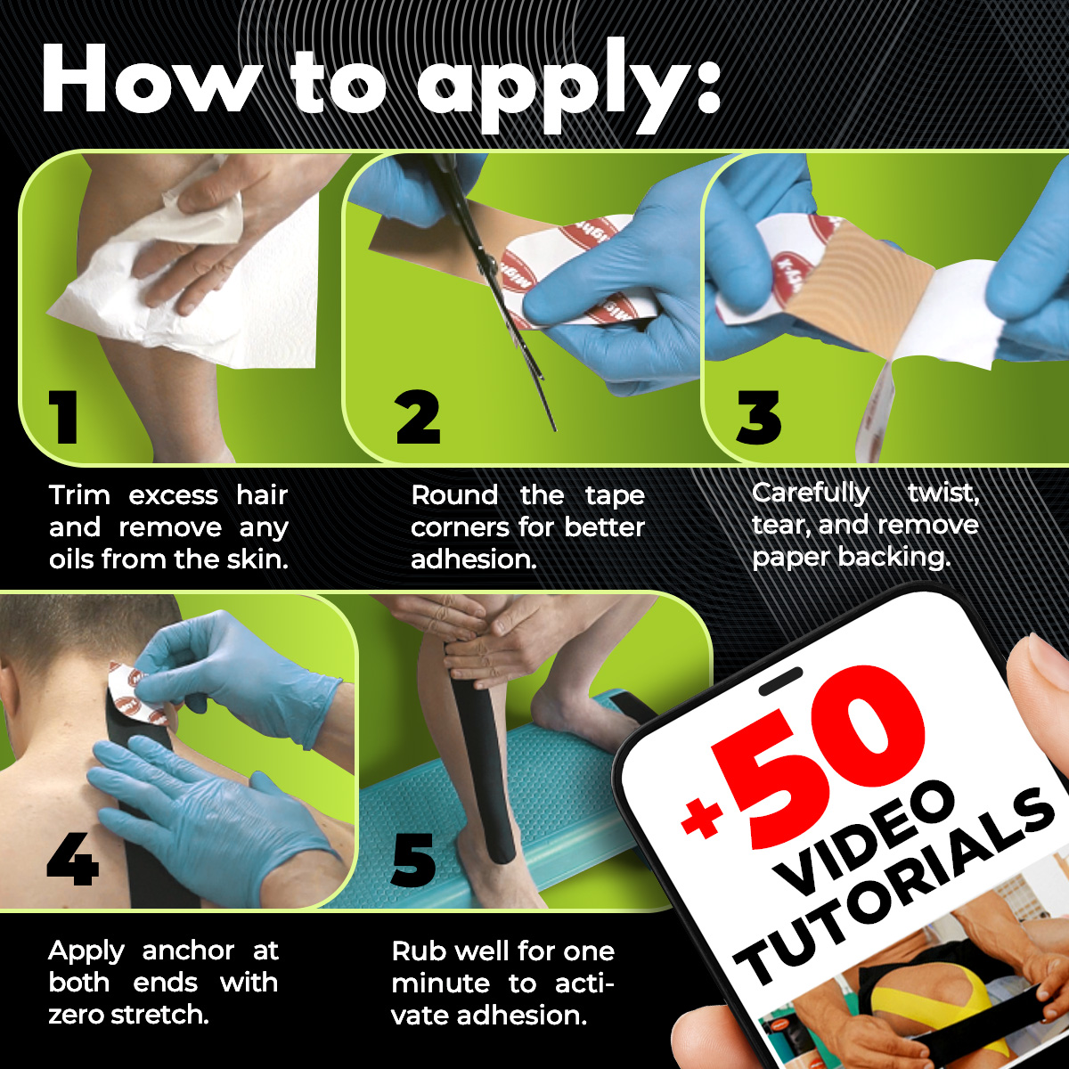 Due to the kinesiology tape waterproof fabric, your muscle tape pain relief application will last longer without peeling or fraying even after a hard sweaty workout or a long relaxing shower. This nylon material is designed to repel water and dry quicker than regular tape. You don’t have to re-apply the sports tape athletic kinesiology backing every day—it saves you money!